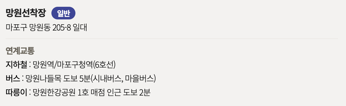 - 따릉이: 선착장 주변 따릉이 대여소 확보