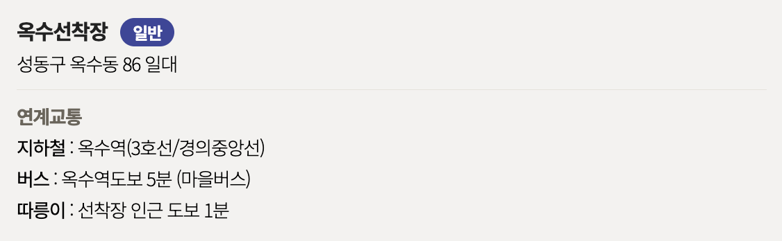 - 지하철 연계: 2호선 뚝섬역 인근 위치, 도보 접근 용이