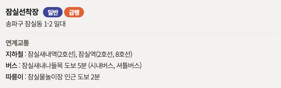 - 무료 셔틀버스: 잠실새내역~종합운동장역 구간 무료 셔틀 운영 예정, 배차 간격 약 15분