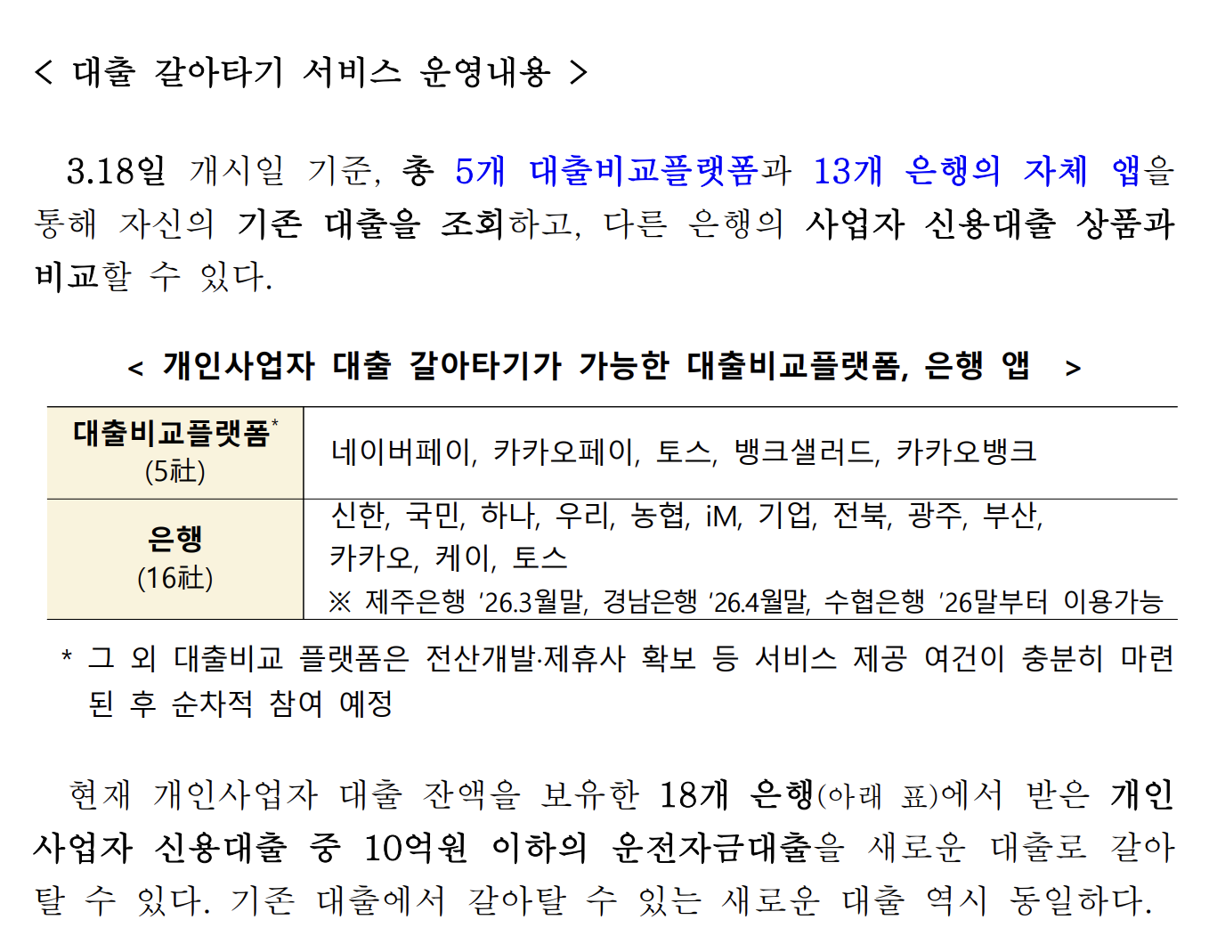 모든 사업자 대출이 아니라, 은행권 운전자금 신용대출만 가능하다는 점입니다.