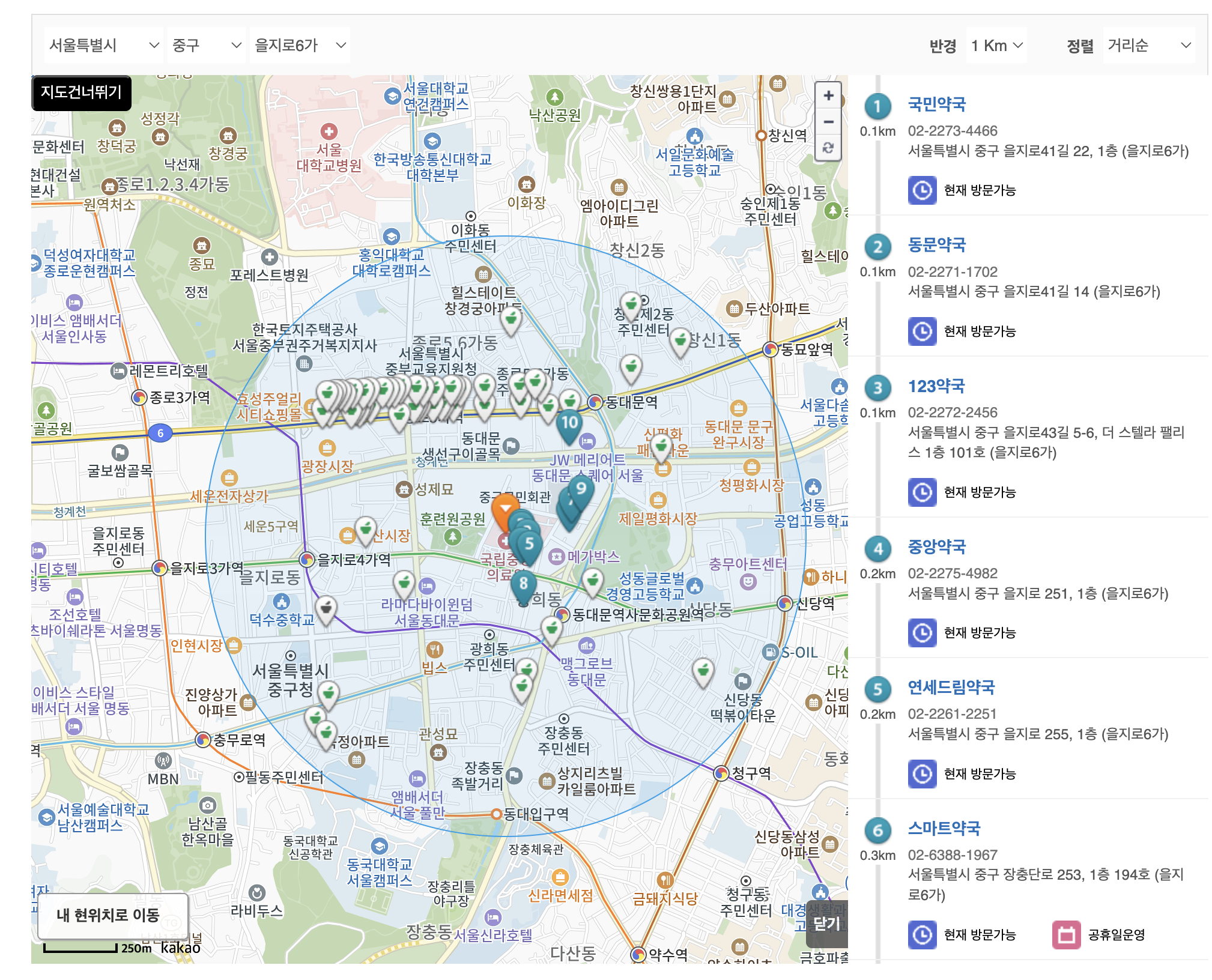 도 함께 확인 가능하므로 병원+약국을 세트로 검색하는 게 좋습니다.