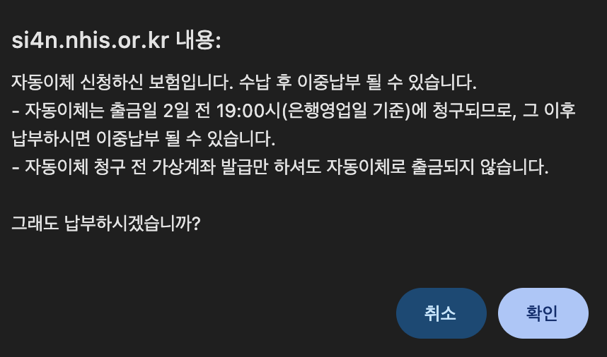- 4대 보험 고지서가 발행되면 등록된 카드에서 먼저 자동 결제 시도
