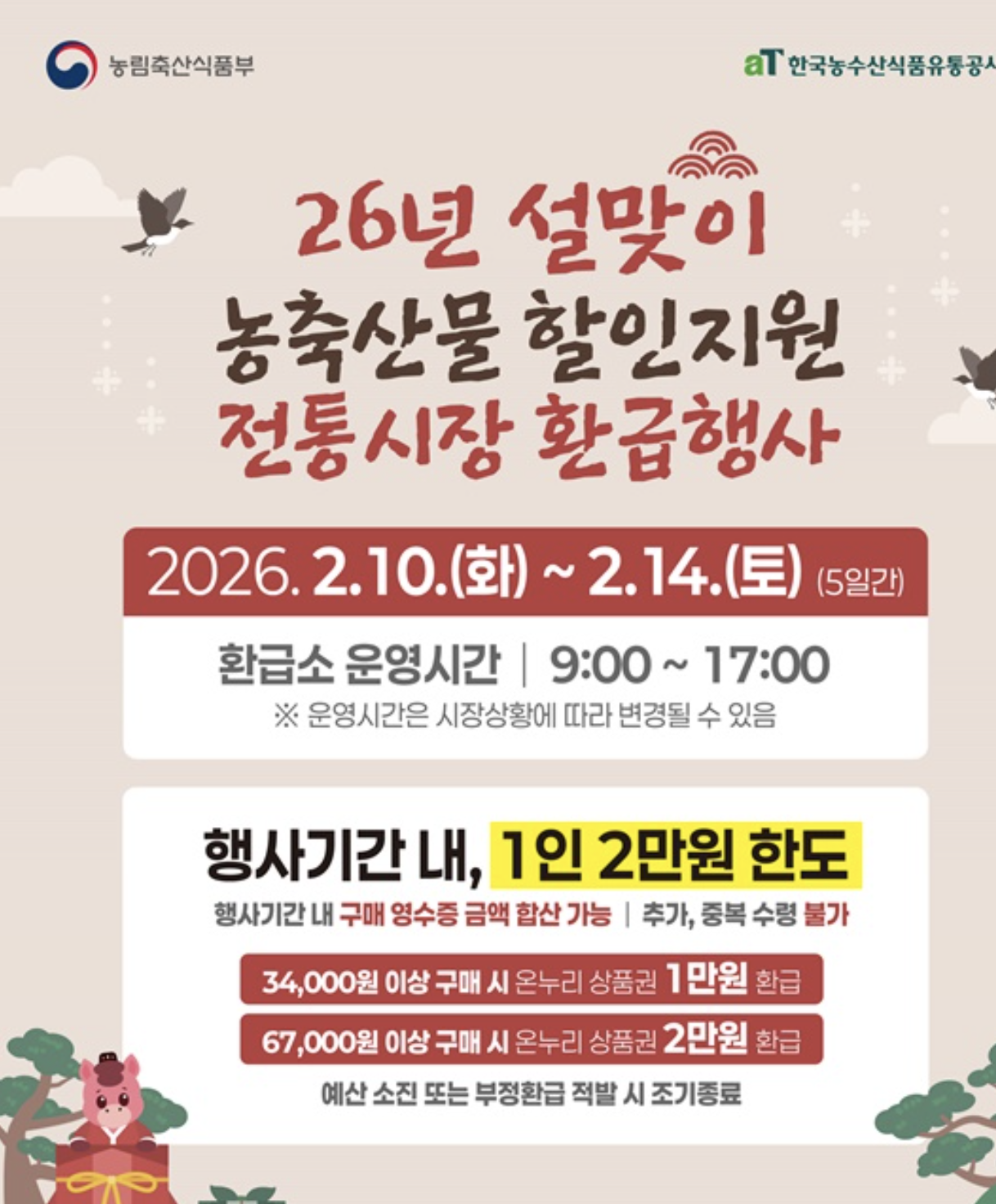 2026년 설 명절을 맞아 온누리상품권 환급행사가 전국 전통시장에서 진행됩니다.