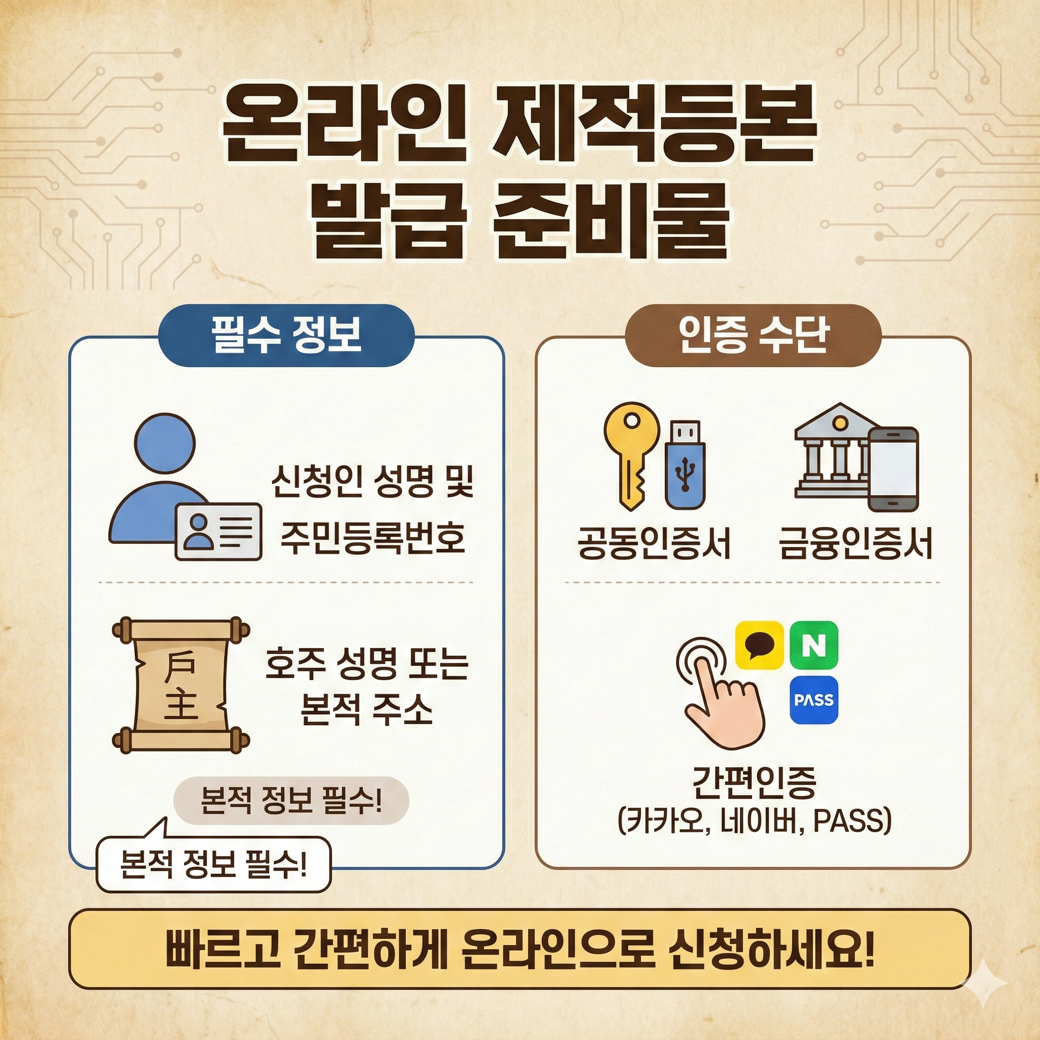(제적부 기준이므로, 본적 정보를 알고 계셔야 빠르게 처리됩니다.) - 인증 수단