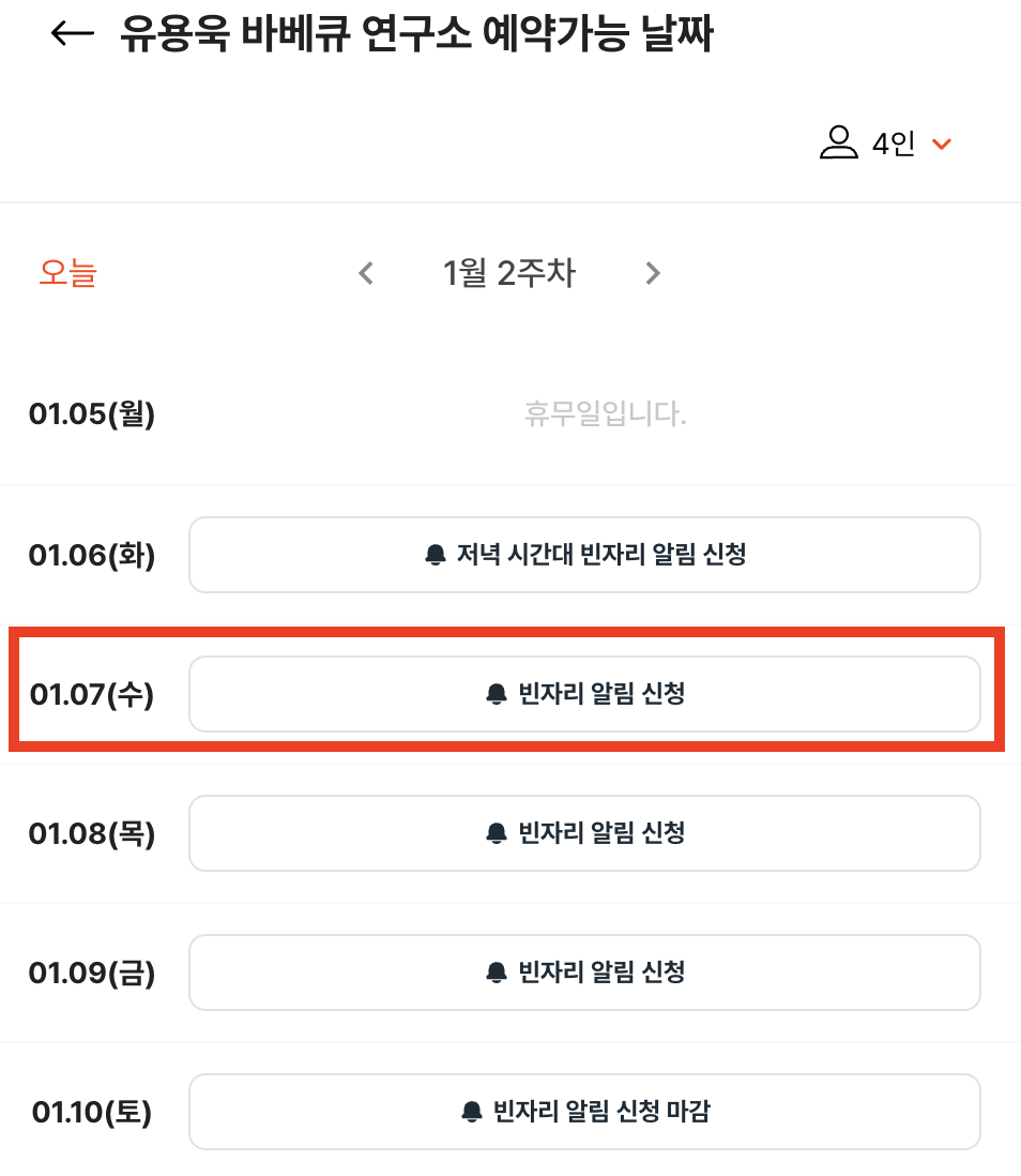 빈자리 알림 신청도 한 가지 방법이 될 수 있을 것 같아요^^: