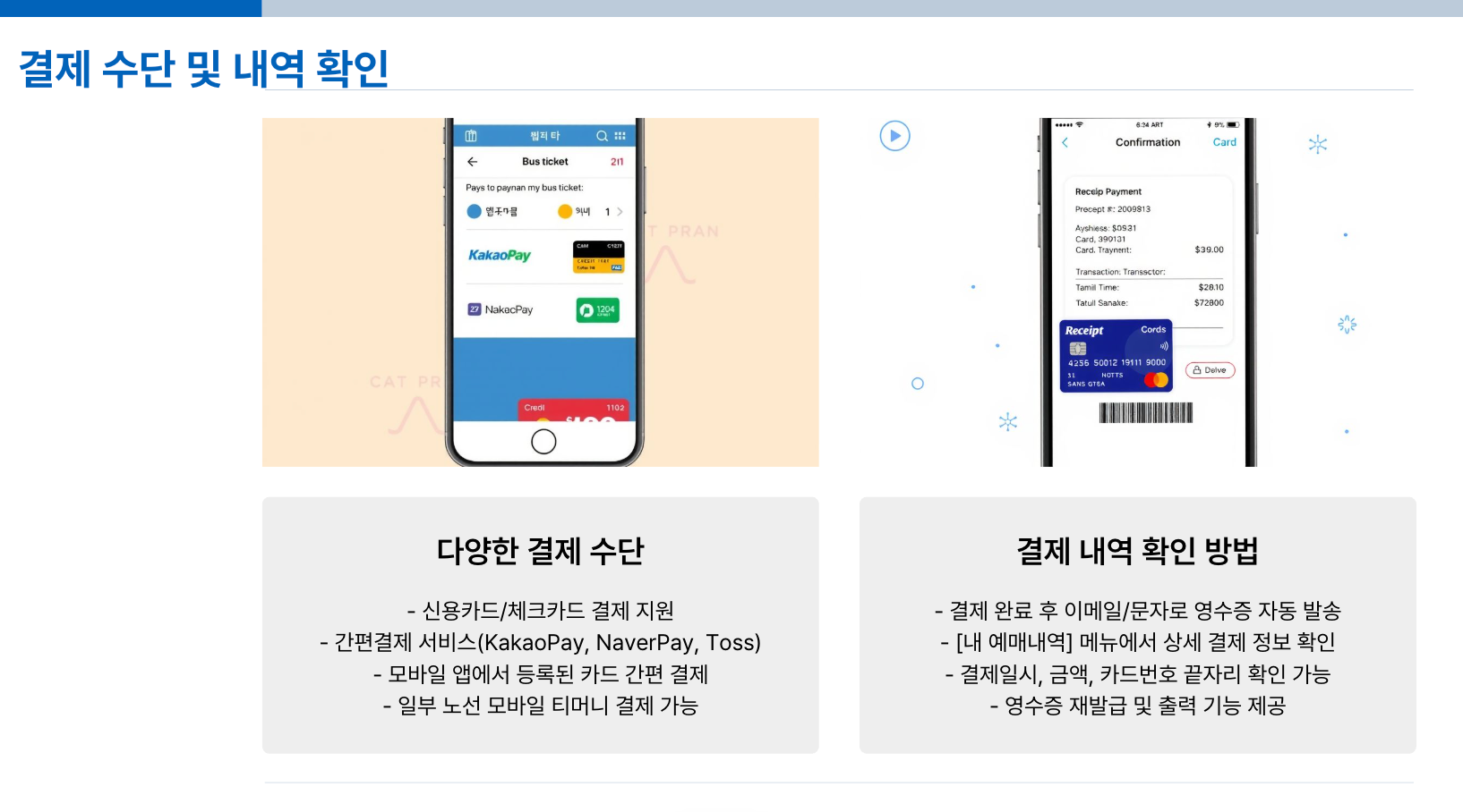 | 📱 모바일 호환 | 모바일 앱 연동 + QR 승차권 발권 가능 |