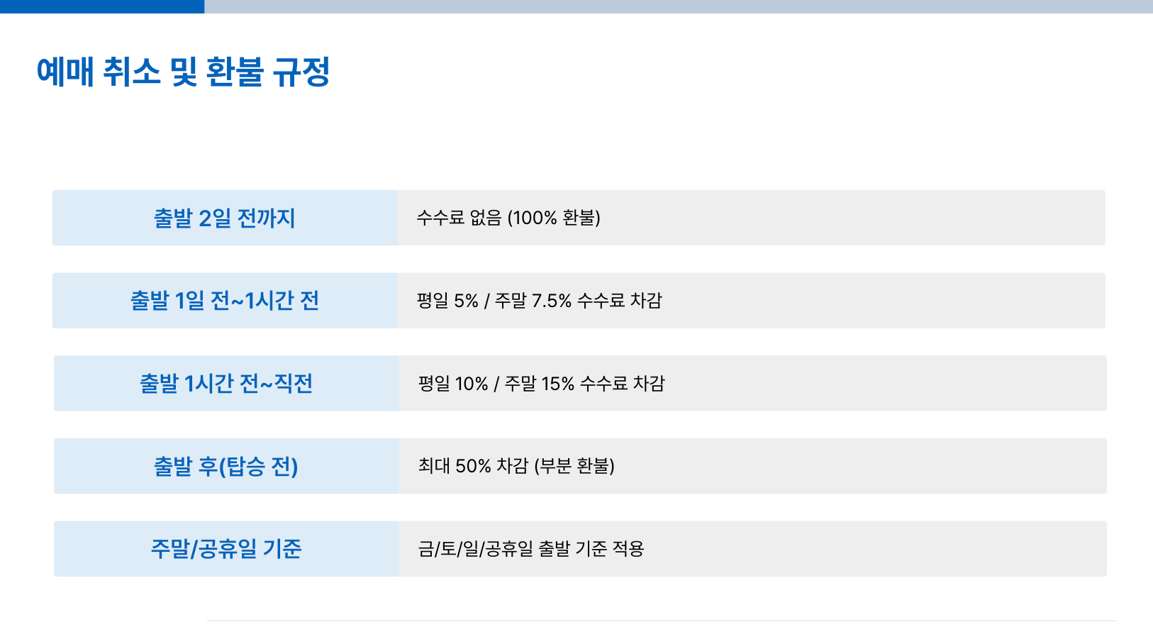 | 1일 전 ~ 출발 1시간 전 | 평일 5% / 주말 7.5% |