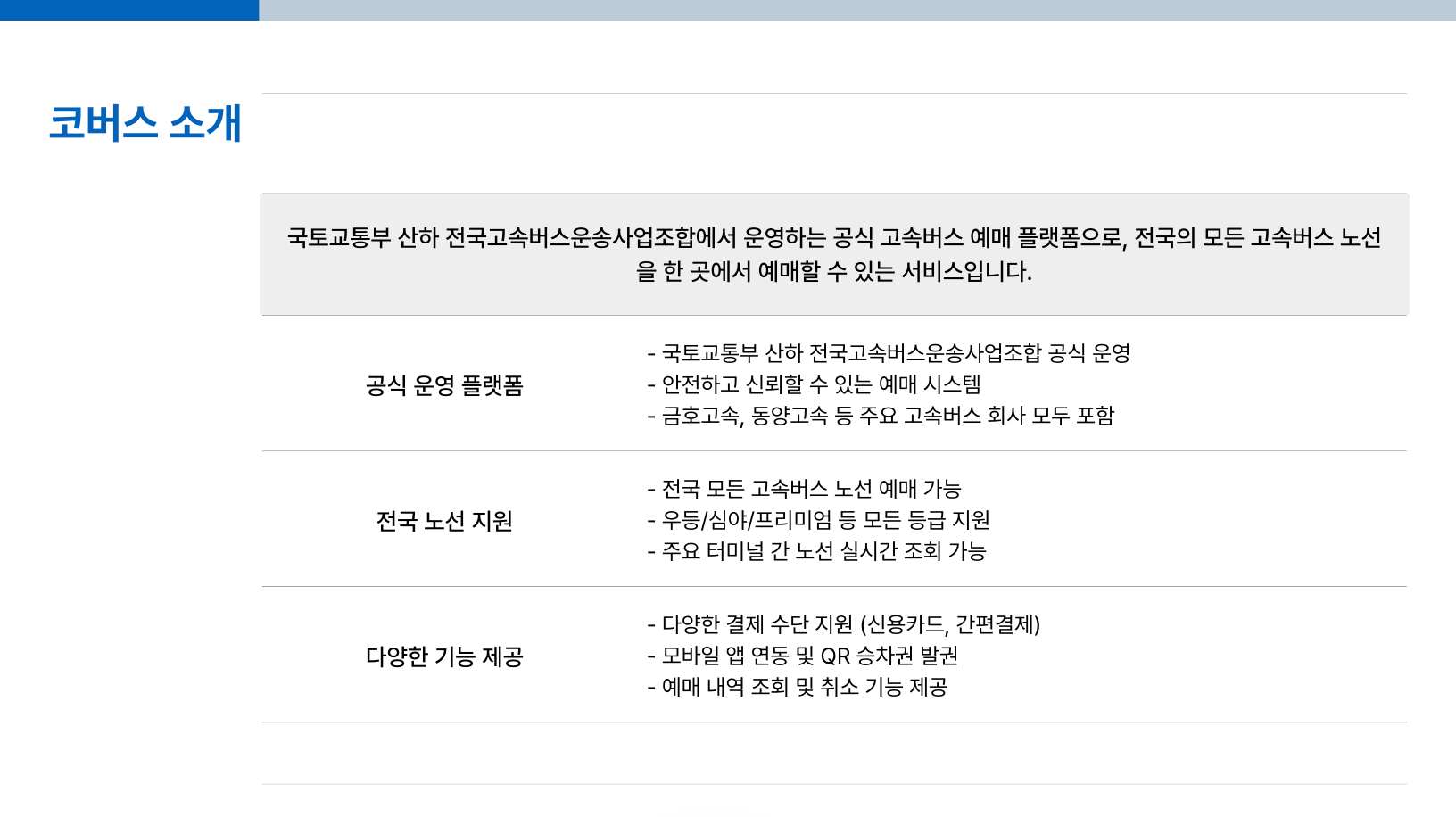 | 🛡️ 공식 운영 | 국토교통부 산하 전국고속버스운송사업조합 운영 |