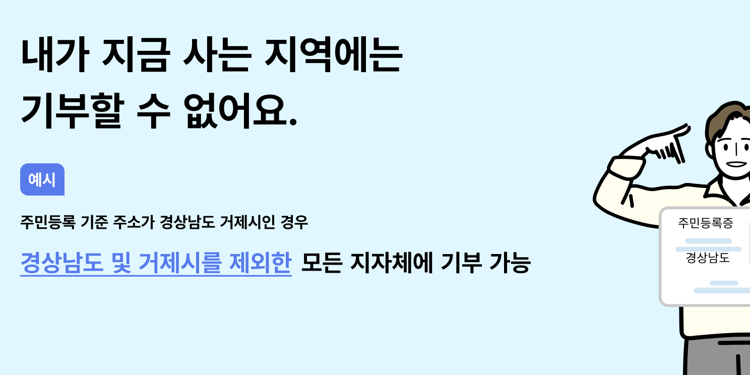 - 기부자: 주소지를 제외한 모든 지역에 기부 가능 (연간 최대 2,000만 원)