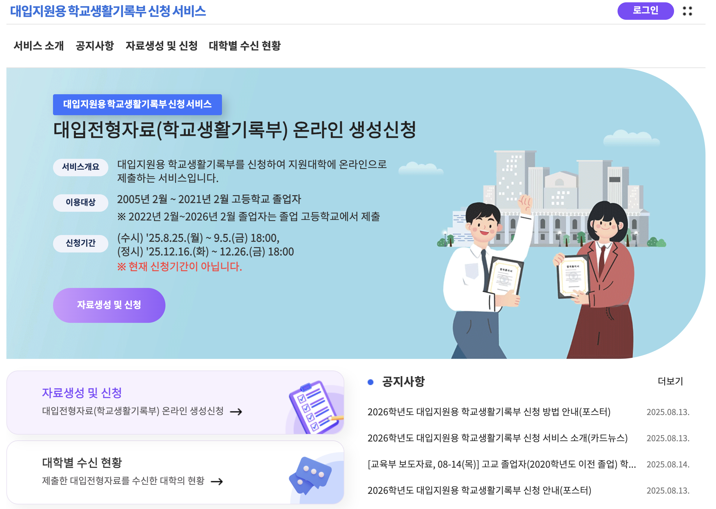 - 본 서비스는 2026학년도 대입 수시/정시를 준비하는 졸업생 대상입니다.