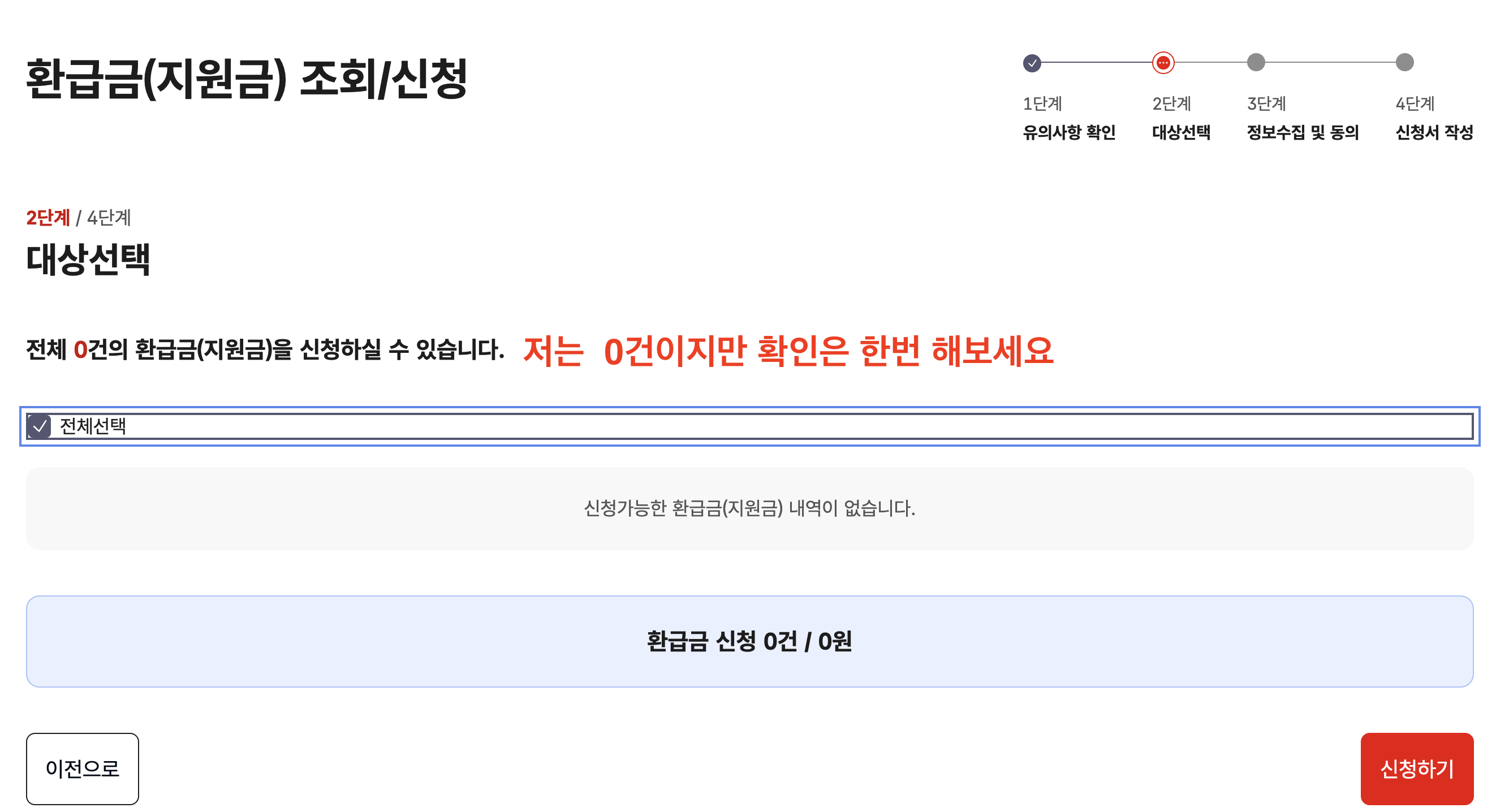 환급금이 있다는 것을 확인했으면, 아래 방법으로 신청하세요.