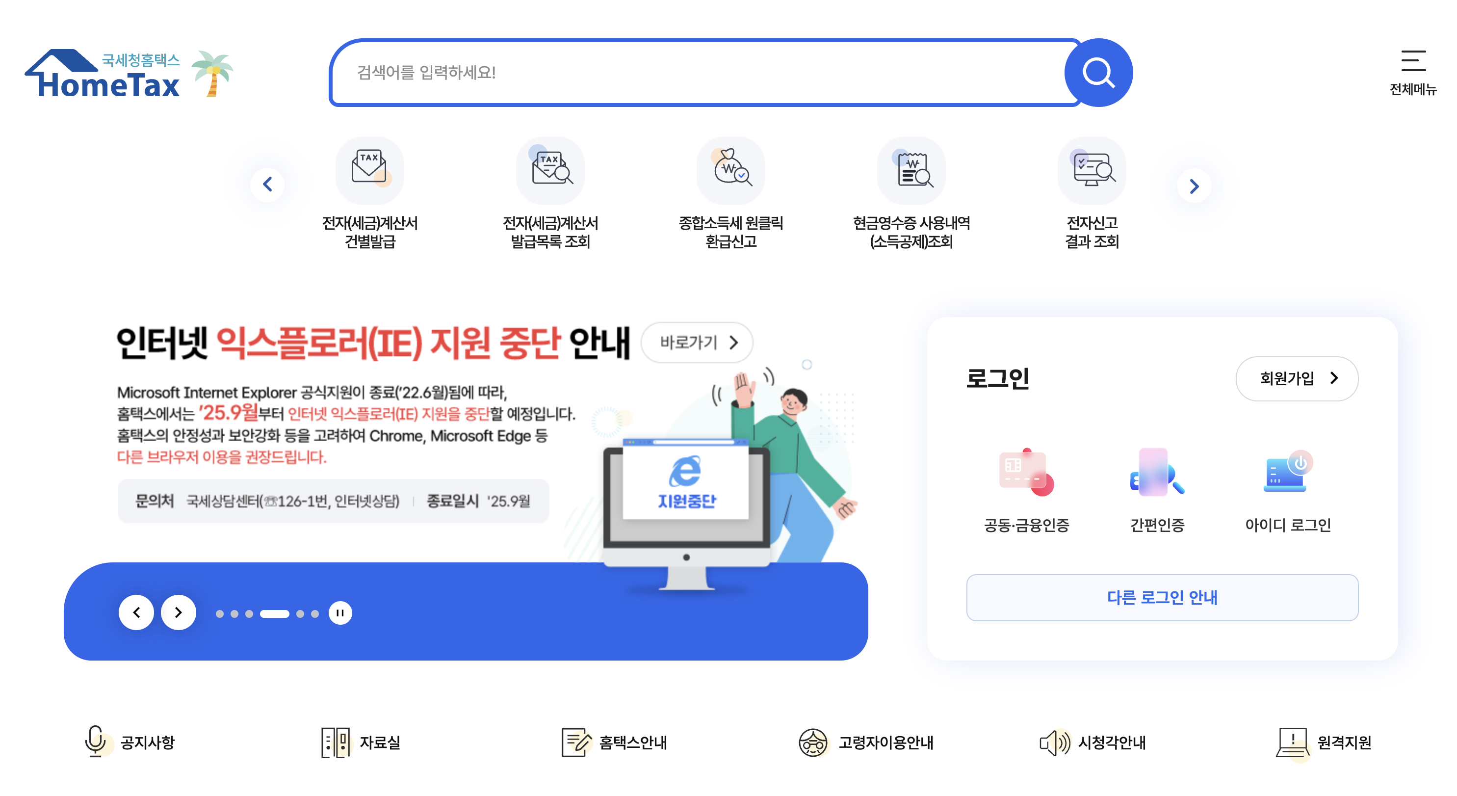 - 납부 전 반드시 홈택스 계산서 내역 확인