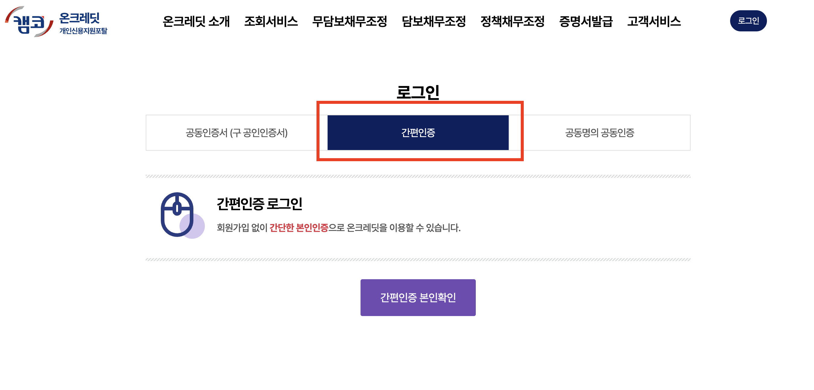 - 캠코 홈페이지에서 제공하는 사전진단 기능 이용