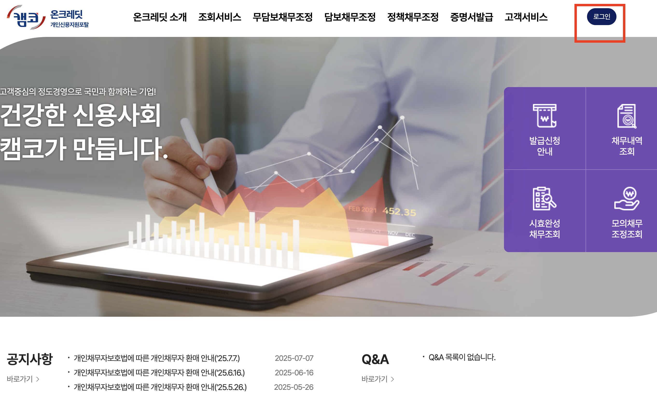 - (추후 추가될) 각 채무조정 전용 페이지 공지 참고