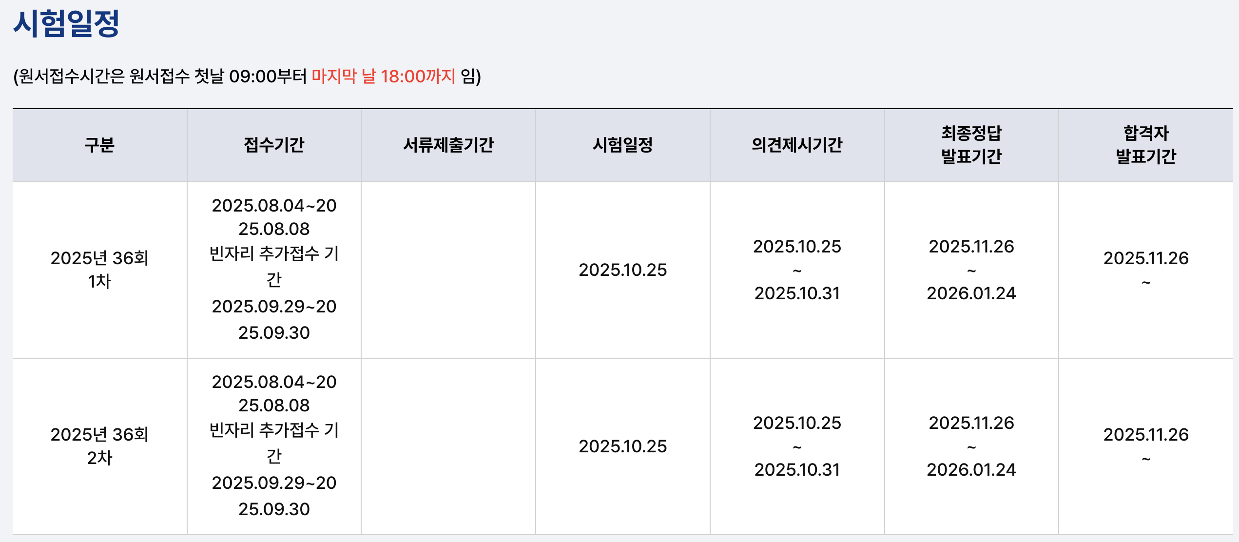 2025년 시험은 10월 25일(토) 하루 동안 1차 + 2차 모두 시행됩니다.