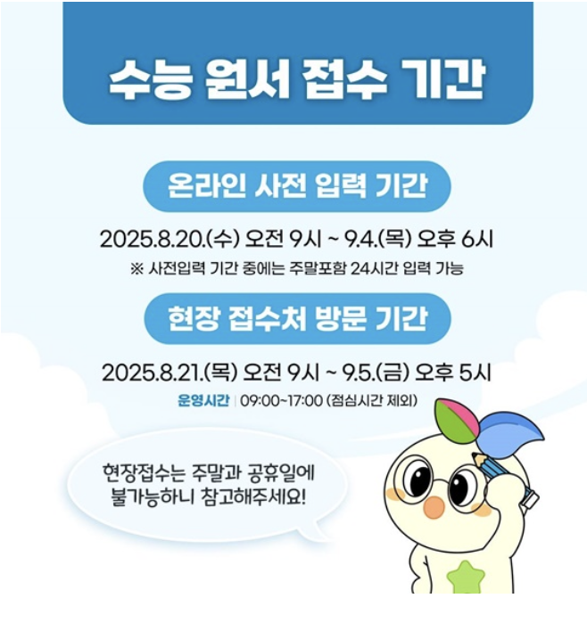 2026학년도 수능 응시원서 접수가 시작됩니다. ✍️ 이번 글에서는 2026 수능 원서 접수 기간, 방법, 준비 서류, 유의사항까지 하나하나 정리해 드릴게요.