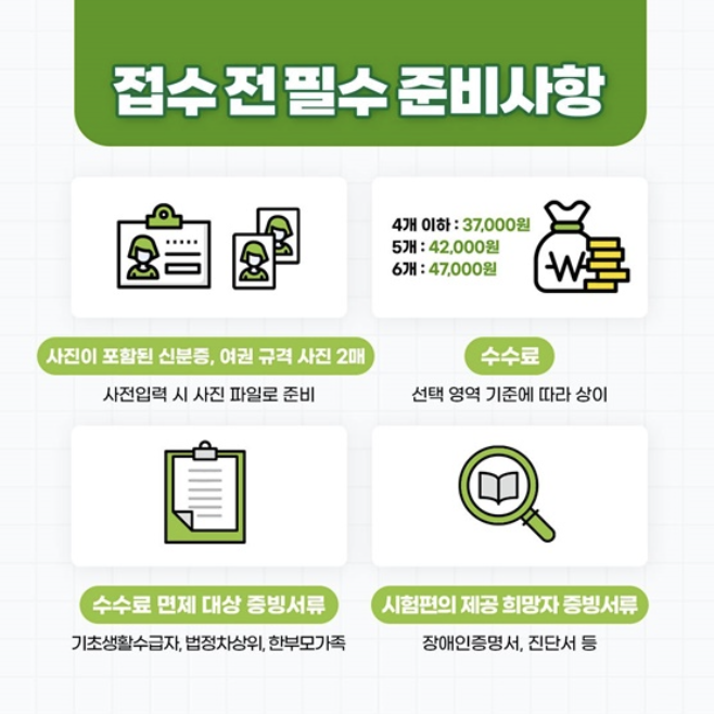 → 아니요. 반드시 현장 방문 후 접수증을 받아야 최종 완료됩니다. - Q. 응시 수수료는 카드 결제 가능한가요?