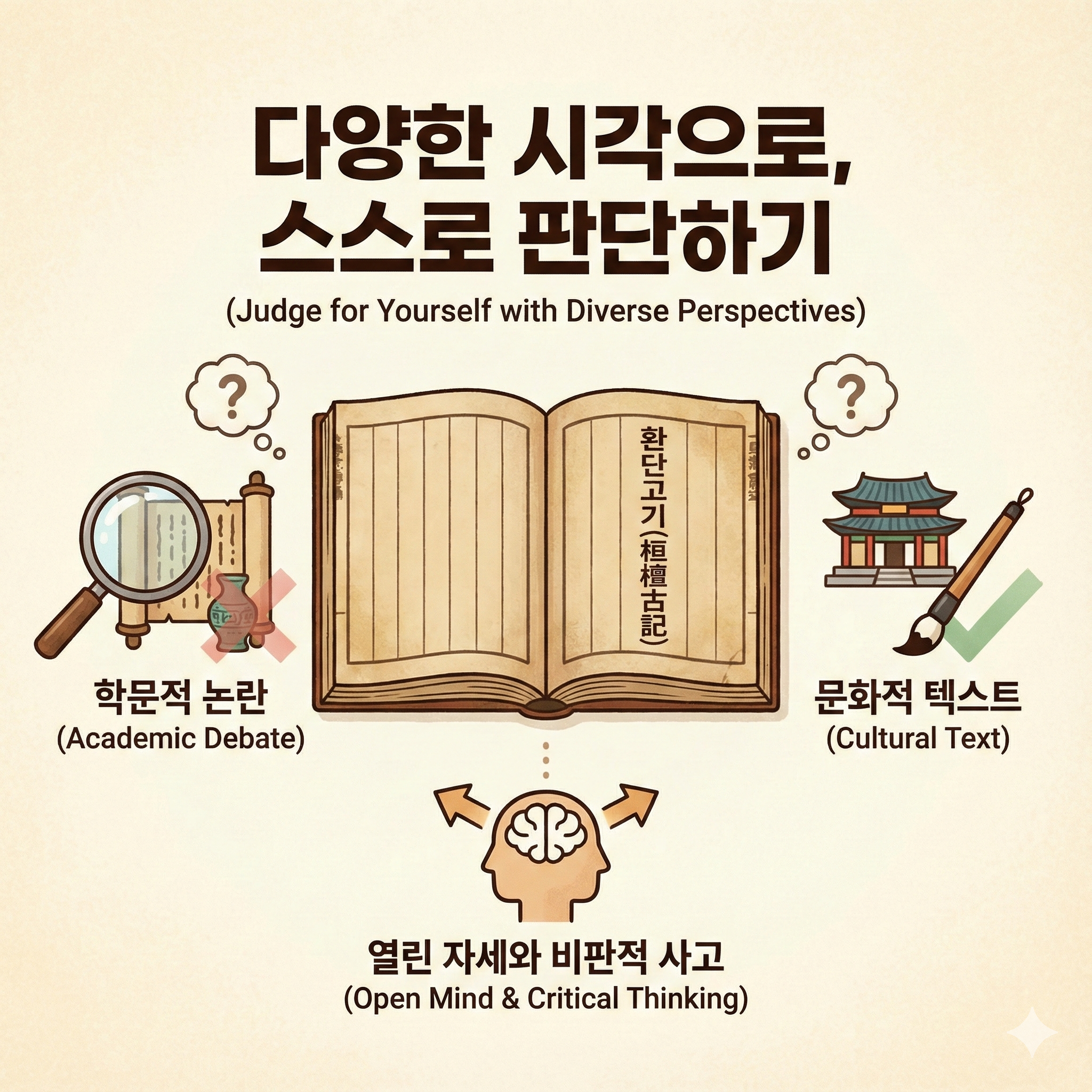 환단고기를 대할 때는 한쪽 주장에 치우치기보다는, 열린 자세와 비판적 사고를 함께 갖는 것이 중요합니다.