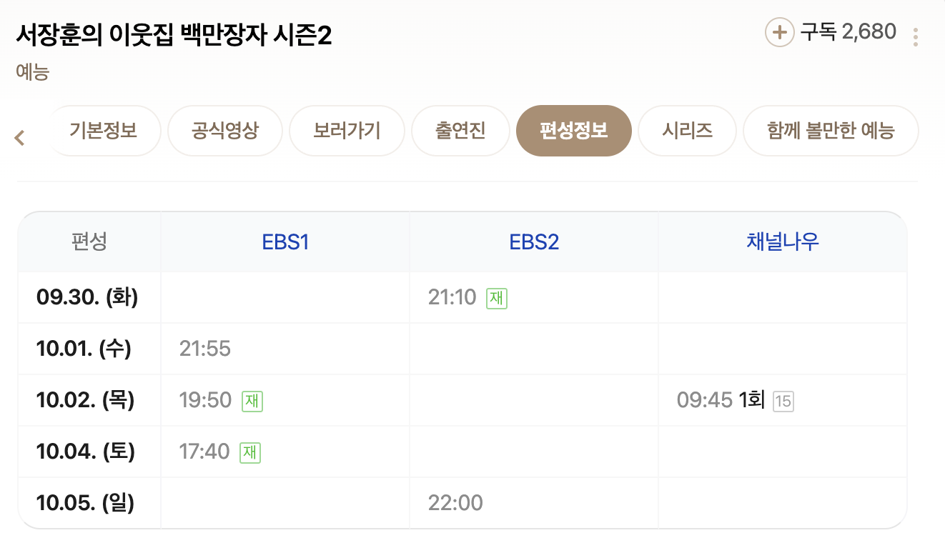 💡 꿀팁 : 전날 저녁에 EBS 편성표를 확인하면, 다음날 재방송 시간대를 쉽게 알 수 있습니다.