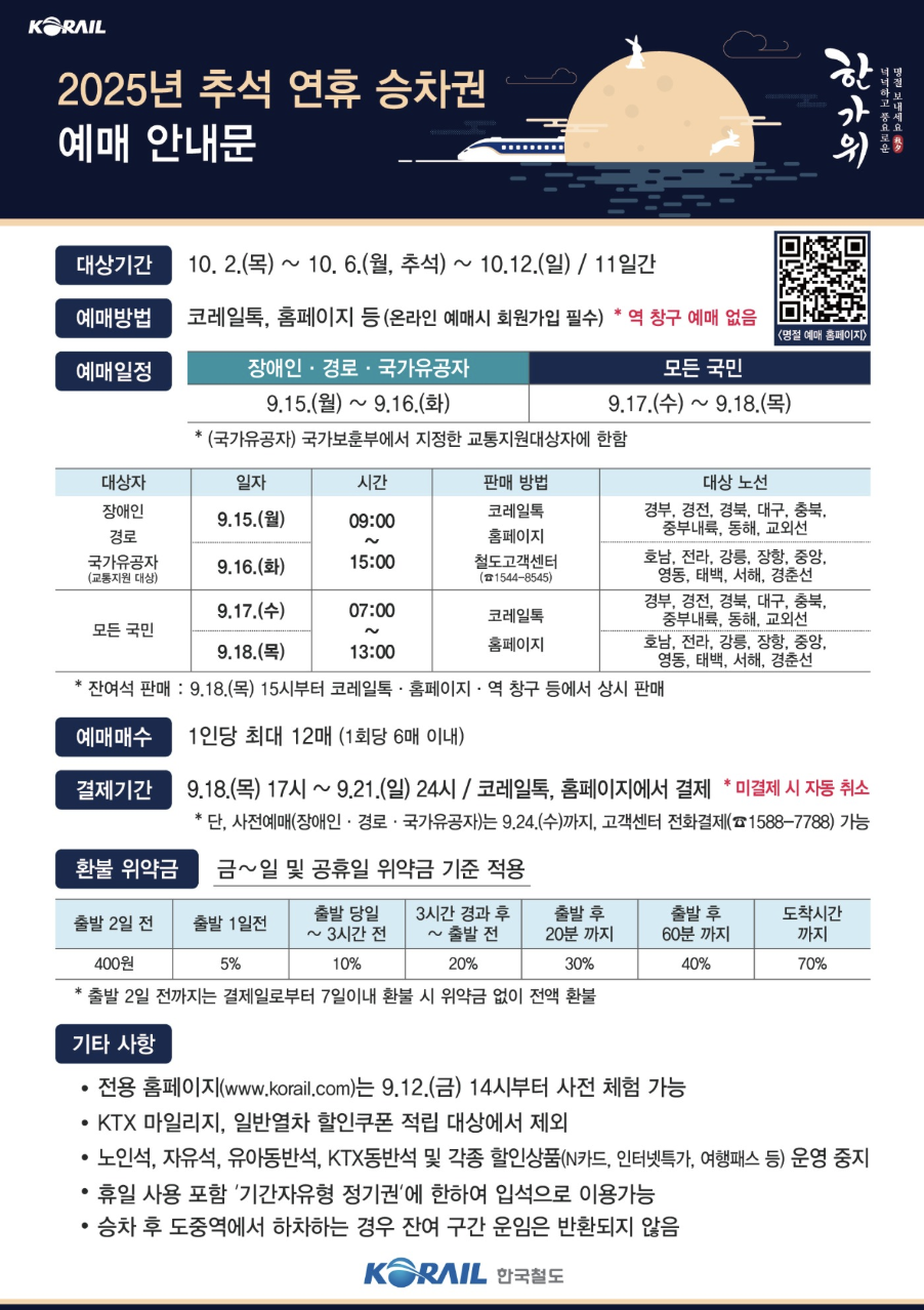 2025년 추석 연휴 기차표 예매 일정이 변경되었습니다.