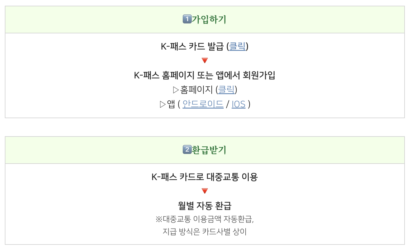 2️⃣ 카드 등록: K패스 공식 홈페이지 또는 모바일 앱 접속 → 회원가입 및 카드 등록