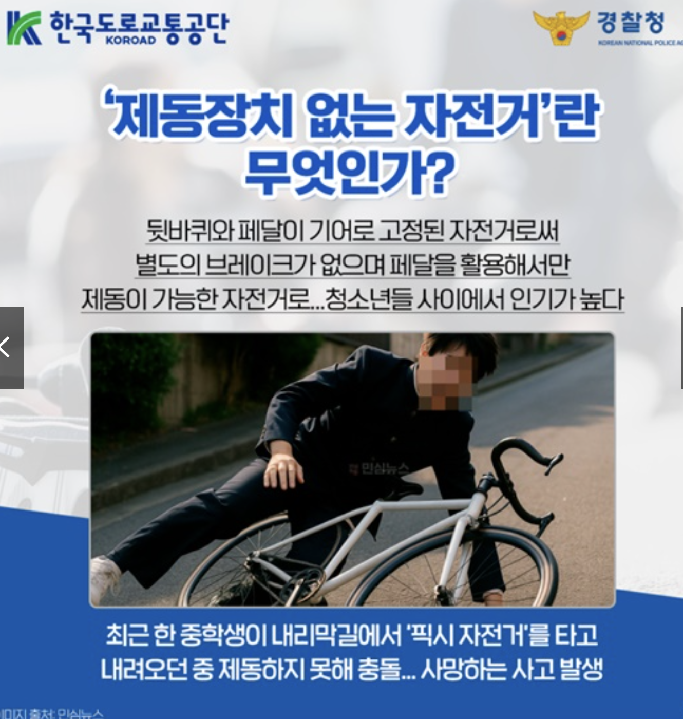 👉 청소년들이 브레이크 없는 픽시 자전거를 즐겨 타다 사고로 이어지는 경우가 많습니다.