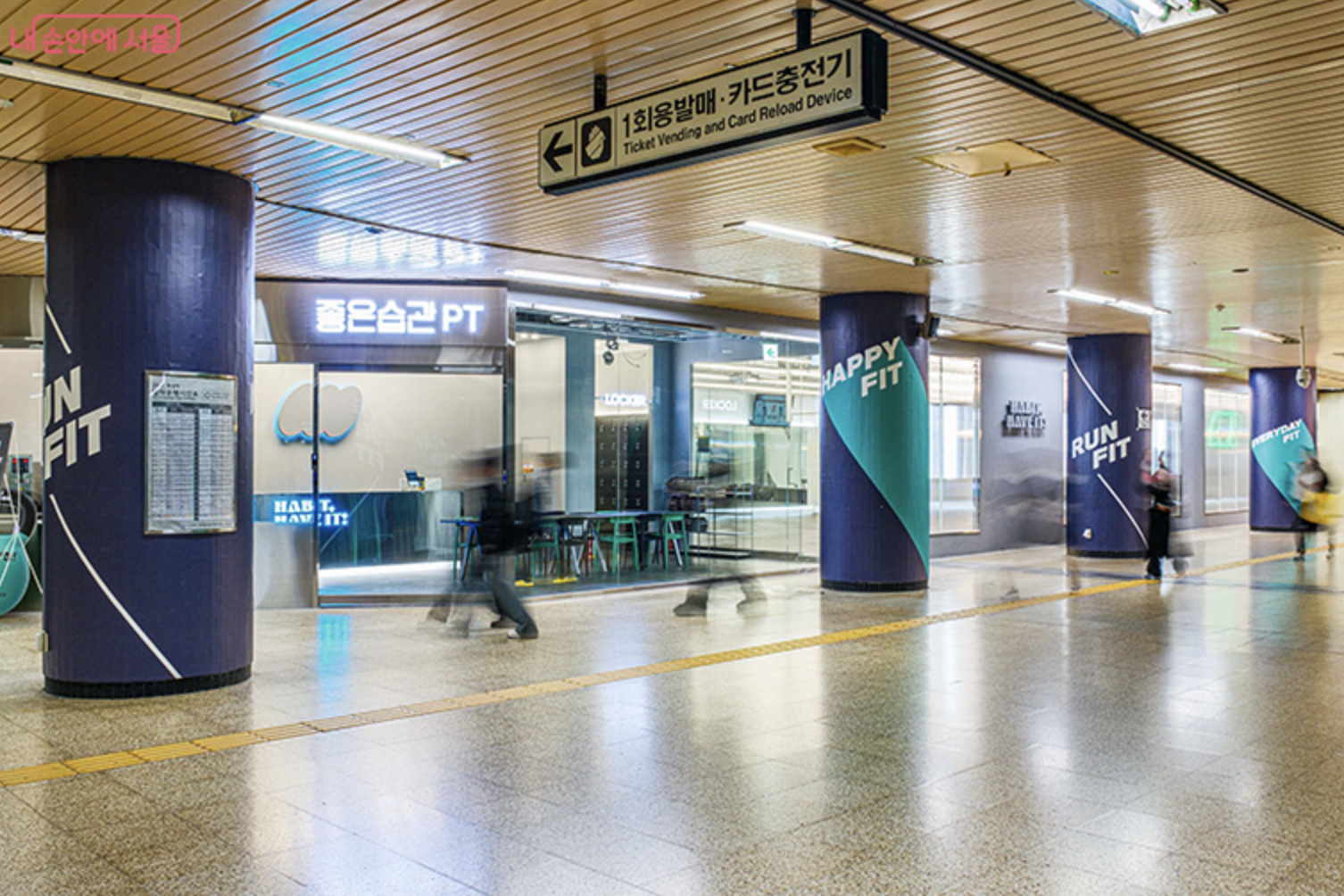 ‘핏 스테이션’은 서울시가 지하철 역사 내 유휴공간을 활용해 만든 운동 지원 공간입니다.
