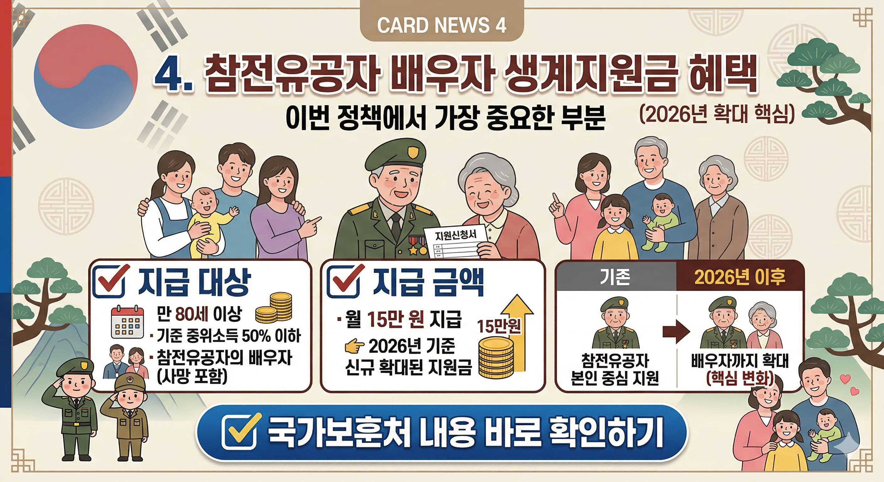 4. 참전유공자 배우자 생계지원금 혜택 (2026년 확대 핵심)
