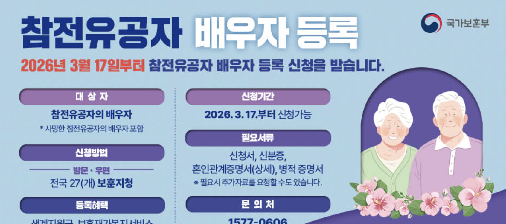 참전유공자 배우자 등록 방법 신청서 혜택 총정리 (2026년 기준)