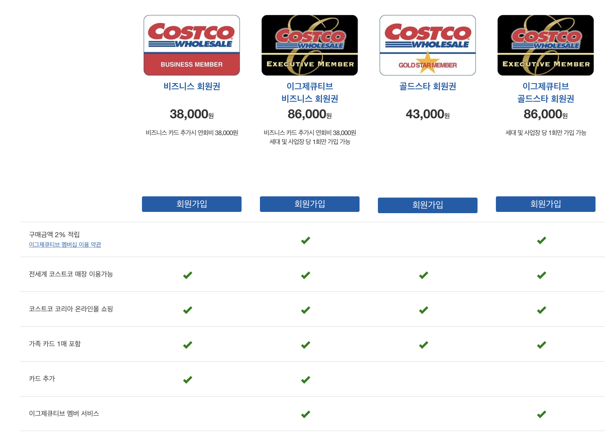 - 비즈니스 회원권 (사업자용): 연회비 38,000원