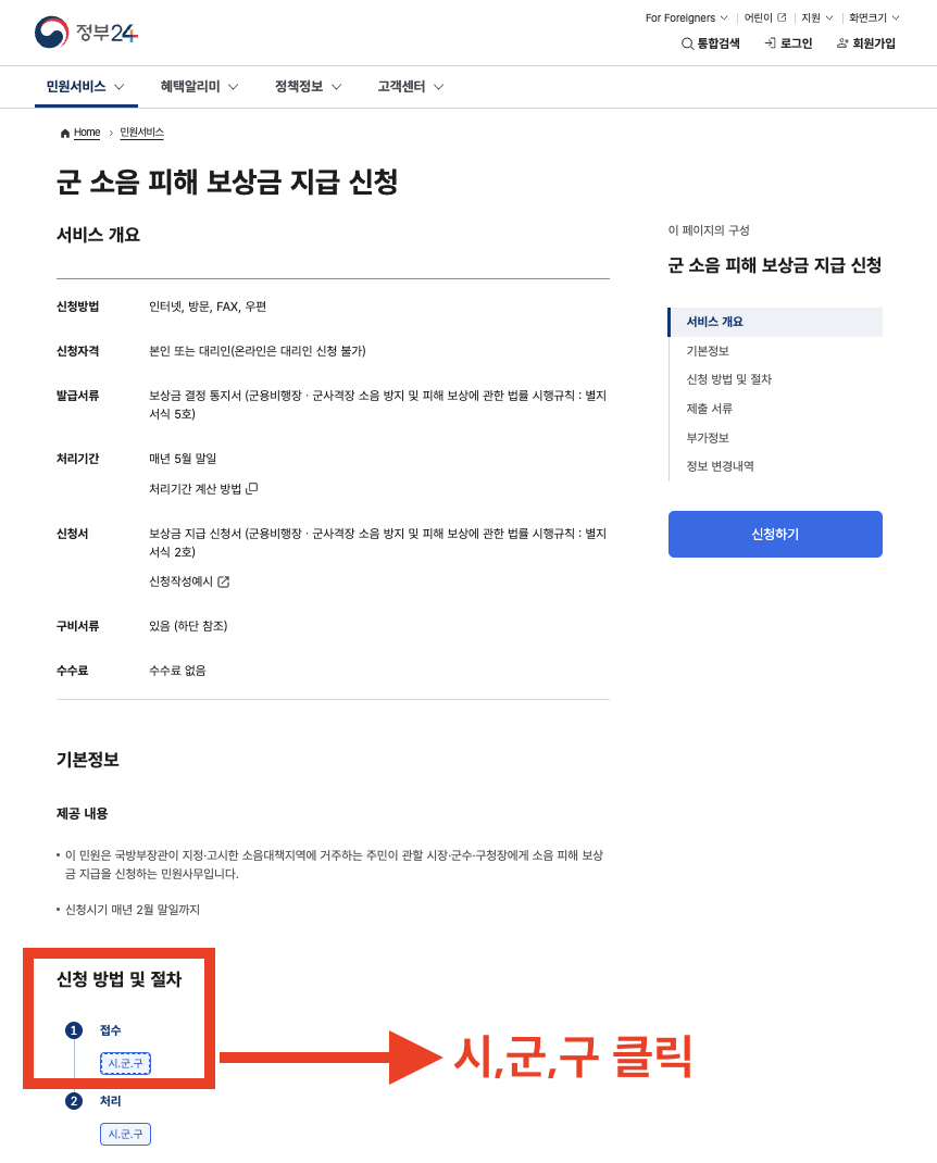 - 온라인: 정부24 → ‘군소음피해보상 신청’ 검색