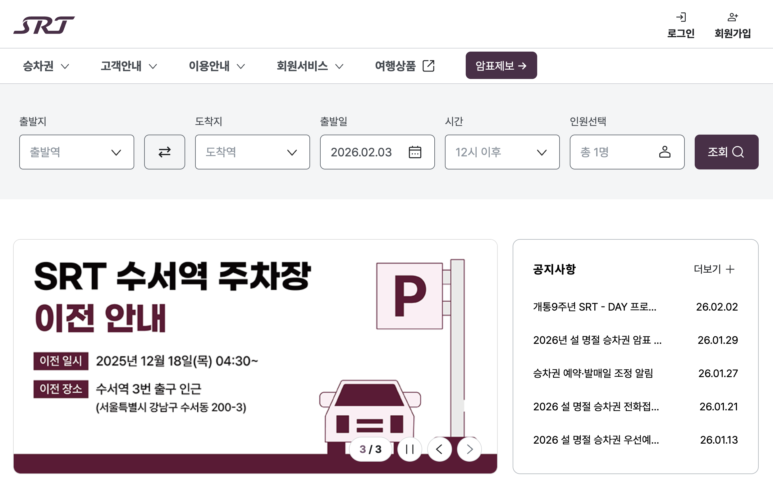 | SRT 예매 | 1월 14일~16일 |