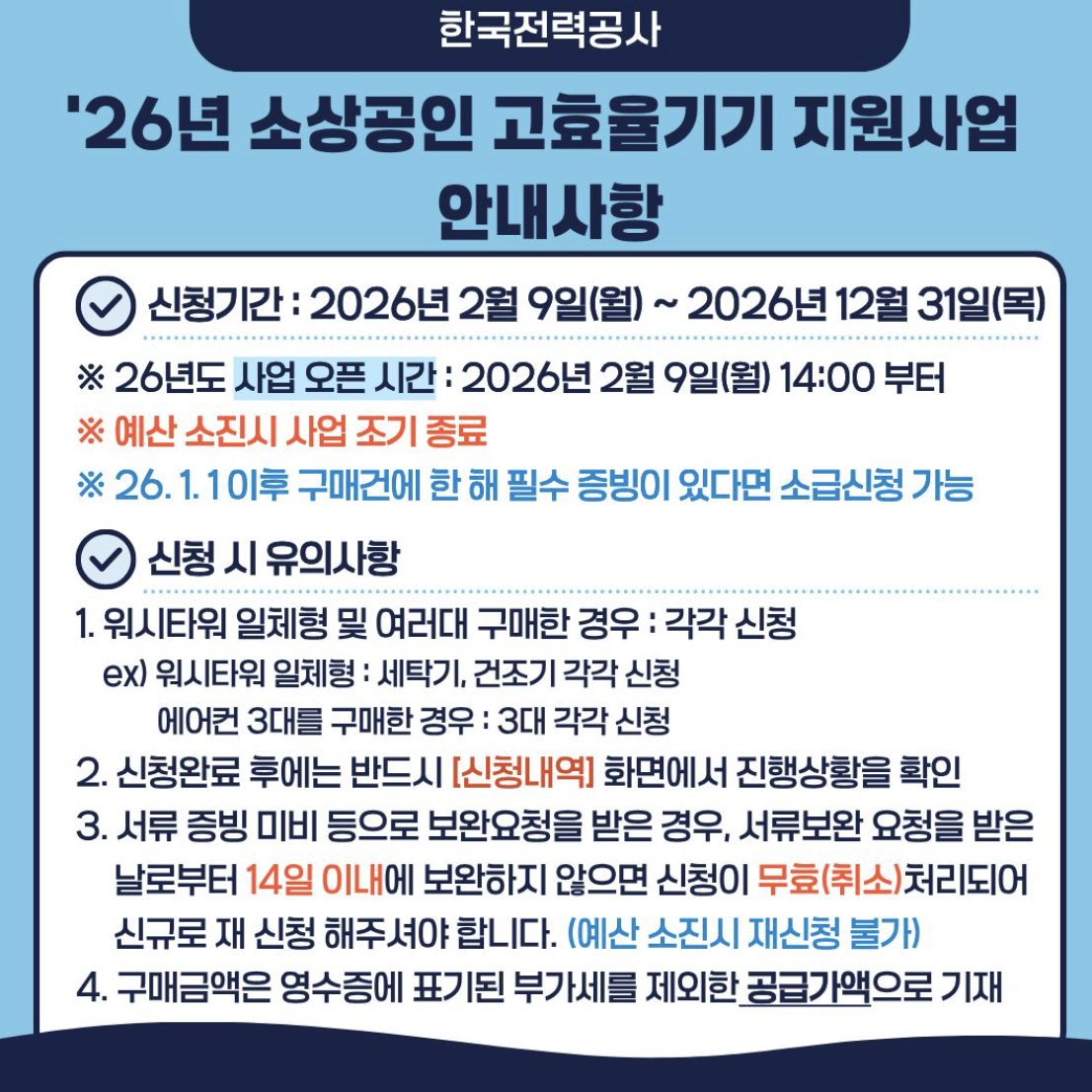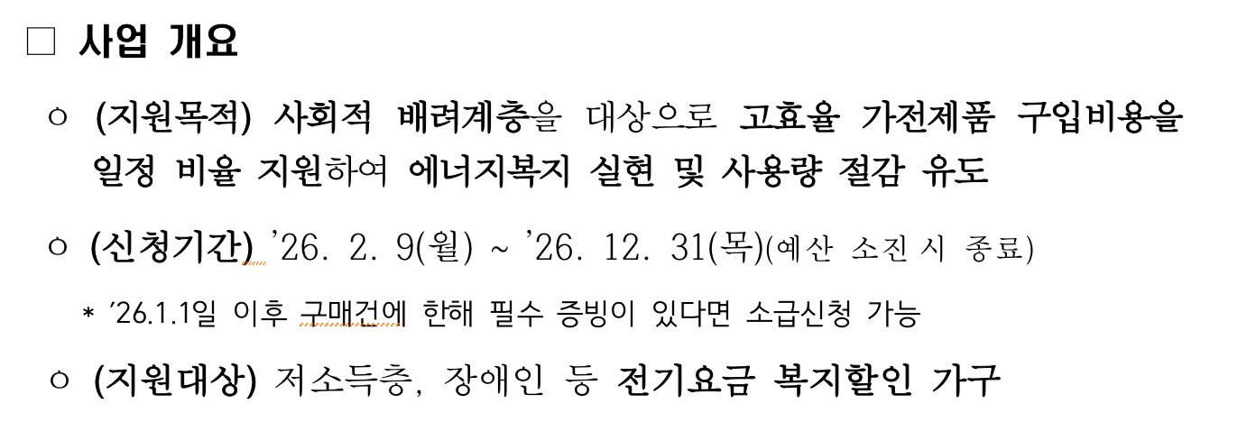 현재 기준으로 고효율 기기·가전 보조금 지원 사업의 세부 일정은 아직 공식 공고 전입니다.