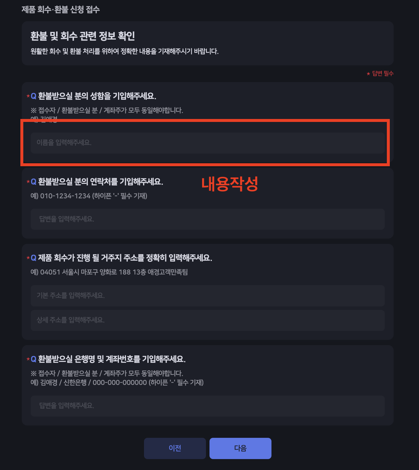 A.애경산업 홈페이지 ‘제품 회수·환불 신청 접수’ 페이지 이용