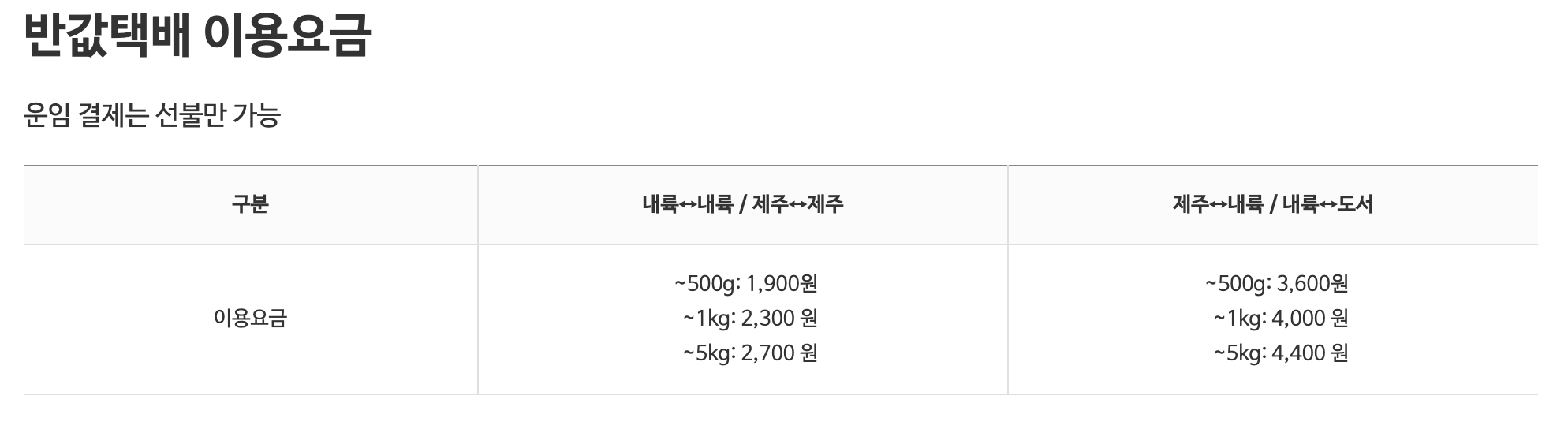 - 착불 불가, 선불만 가능